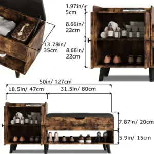 Maximize organization and style with the 50″ Entryway Shoe Bench. This functional and sleek piece offers hidden storage, making it perfect for tidying up your entryway, hallway, or living room. Featuring a spacious top seat for easy shoe removal and a shelf for additional storage, the oak-finished wood ensures durability and a classic look. The floor-mount design ensures stability, and the cabinet offers a neat place for shoes or accessories. Ideal for small spaces, it brings both convenience and style to your home.