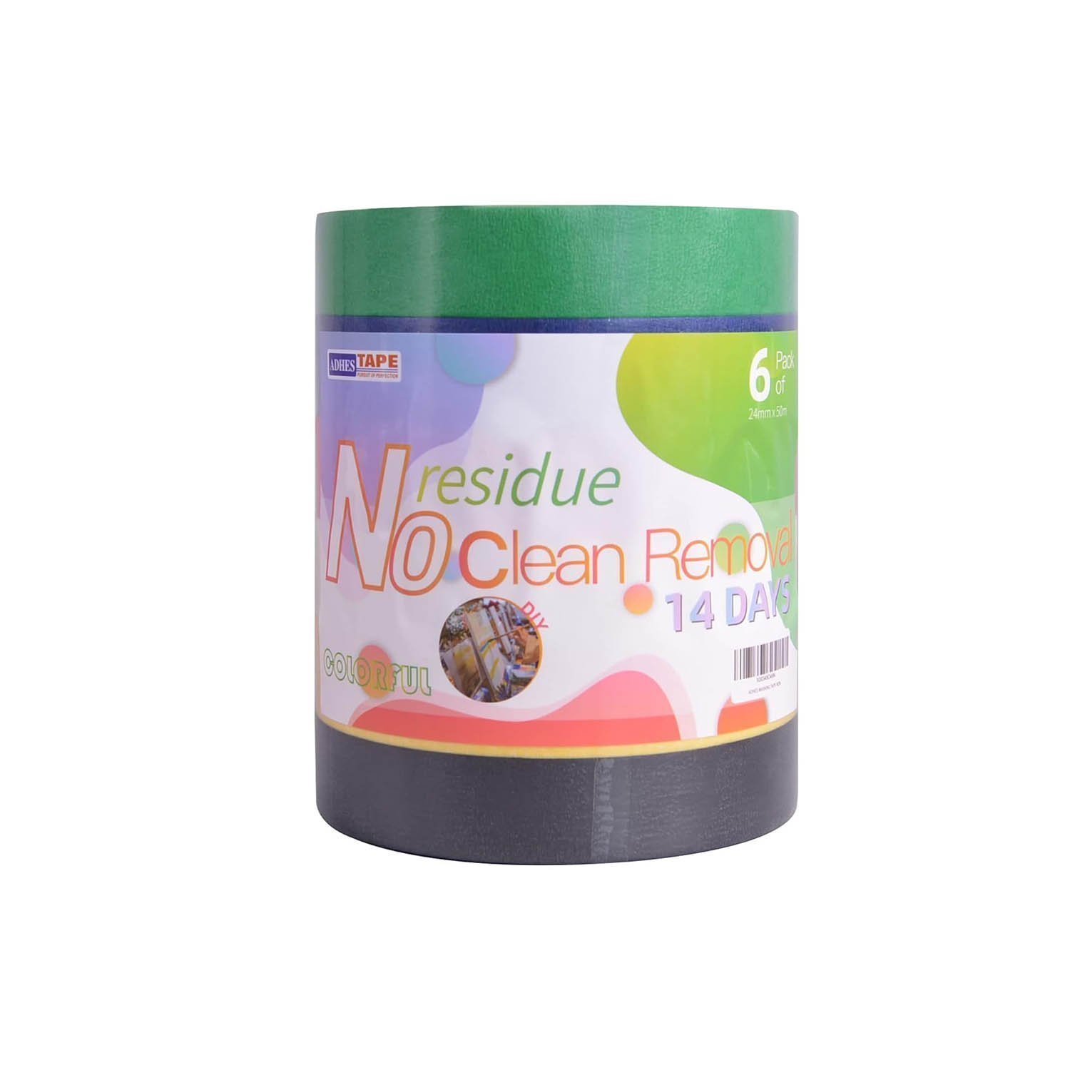 ADHES Colored Masking Tape, Easy Tear Adhesive Leaves No Residue Painters Tape – 1 Inch X 55 Yds, 6 Roll